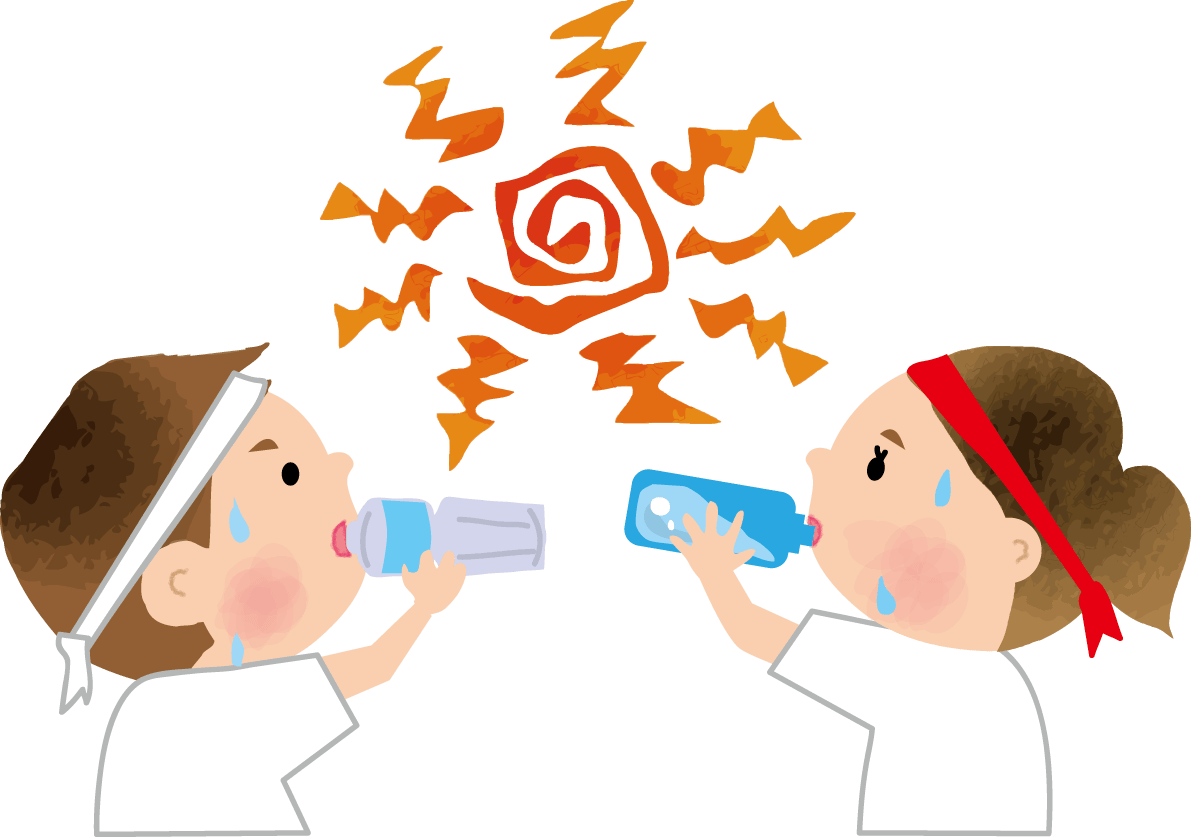 Athletic meet for children in gym clothes to rehydrate to prevent heat stroke