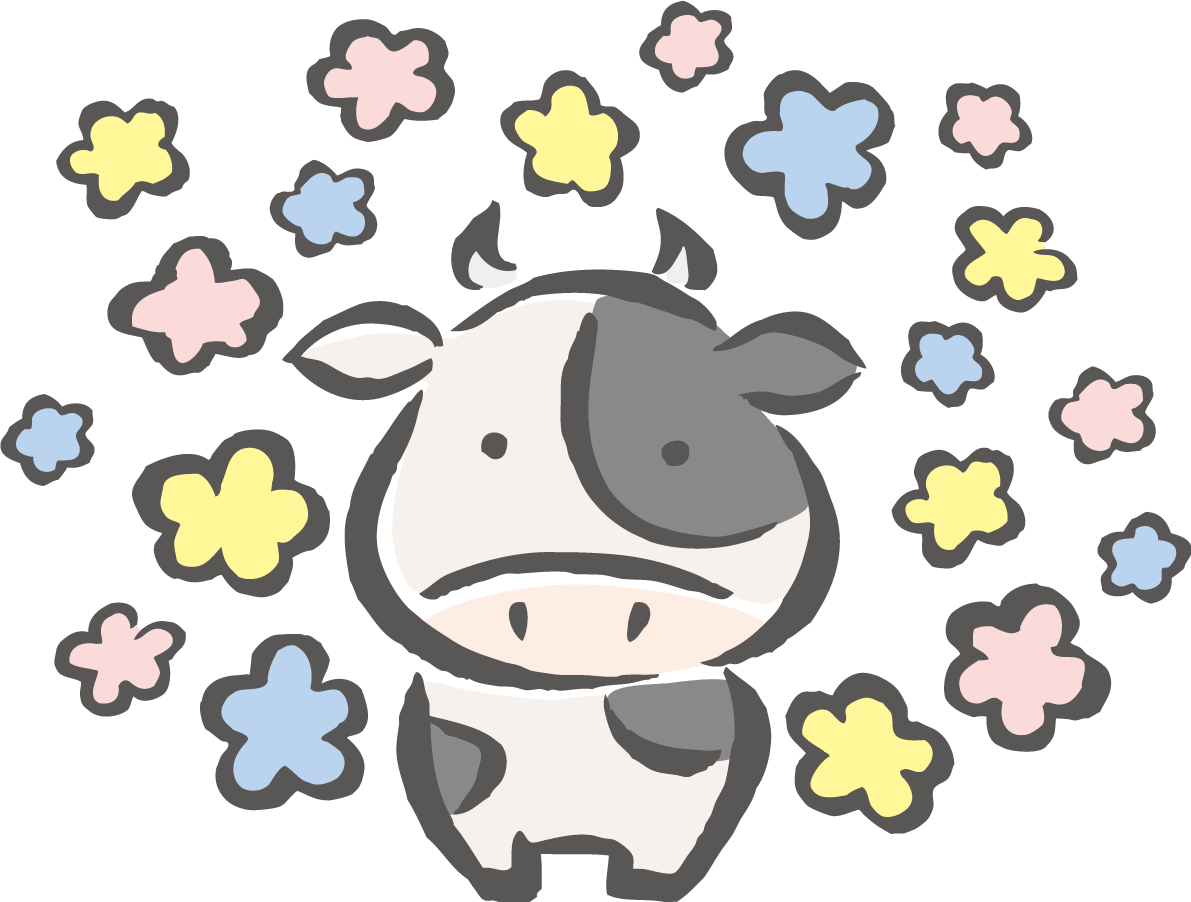 Brush drawing style-Parent and child cow-Cute 2021-Ox year -