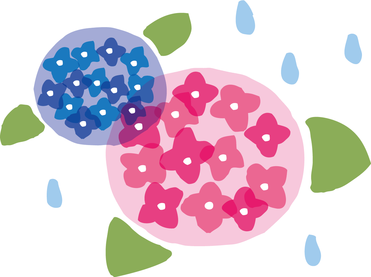 Fashionable and beautiful purple and blue hydrangea illustration (rainy season) -