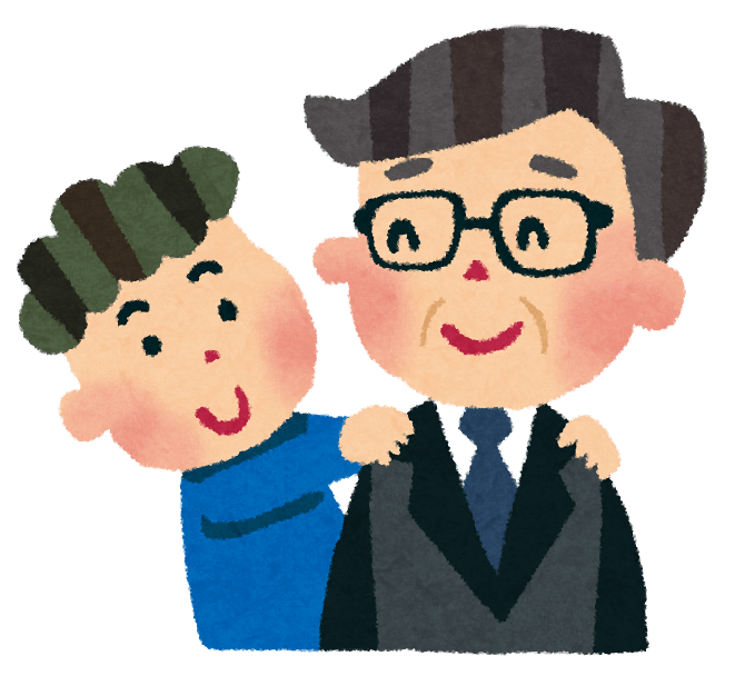 3 generation family (old man and woman-dad-mother-son-daughter) guts pose -