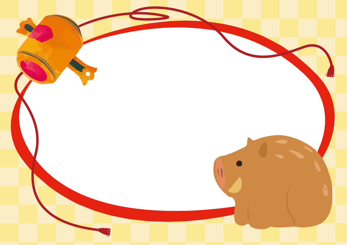 New Year's card frame frame of the year of the pig with a cute wild boar and a launching gavel