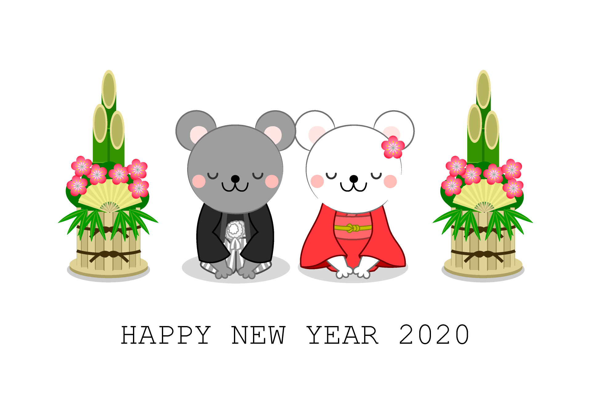 Plum and bamboo line art in a circle frame-mouse (mouse) 2020 child year -