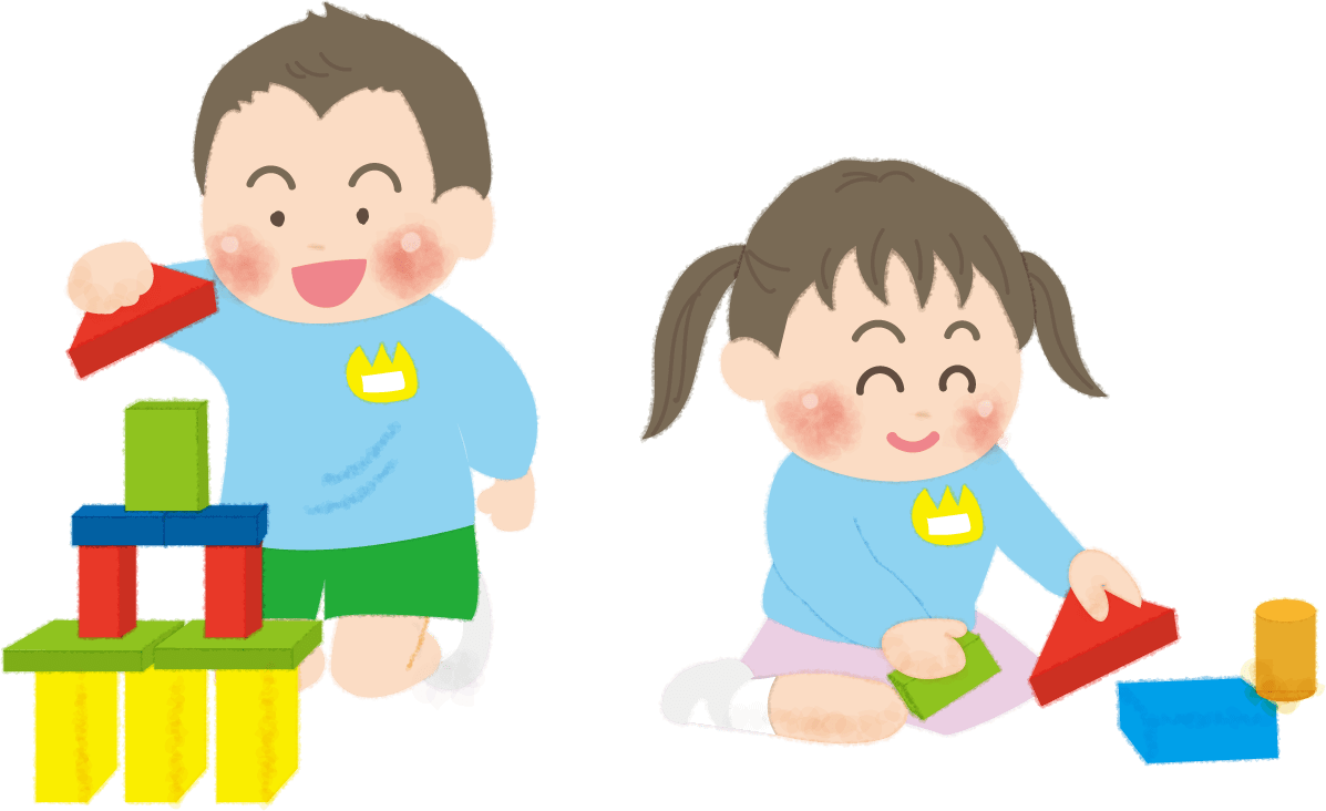 Nursery school children and male nursery teachers play -