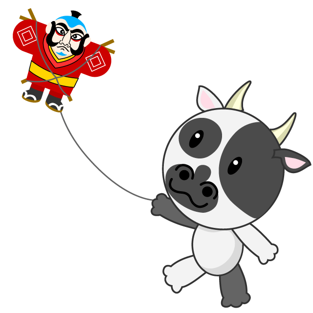 Brush drawing style-Cow and plum blossom-Cute 2021-Ox year -