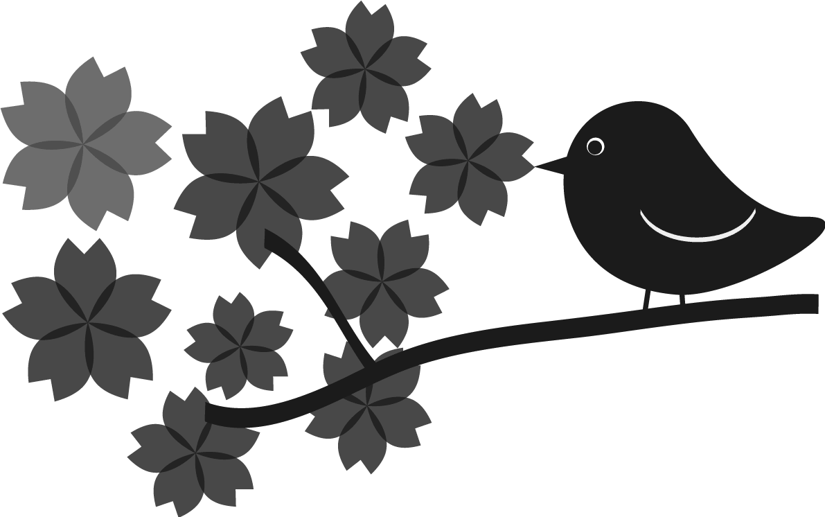 Grayscale pop cherry blossoms and birds-black and white