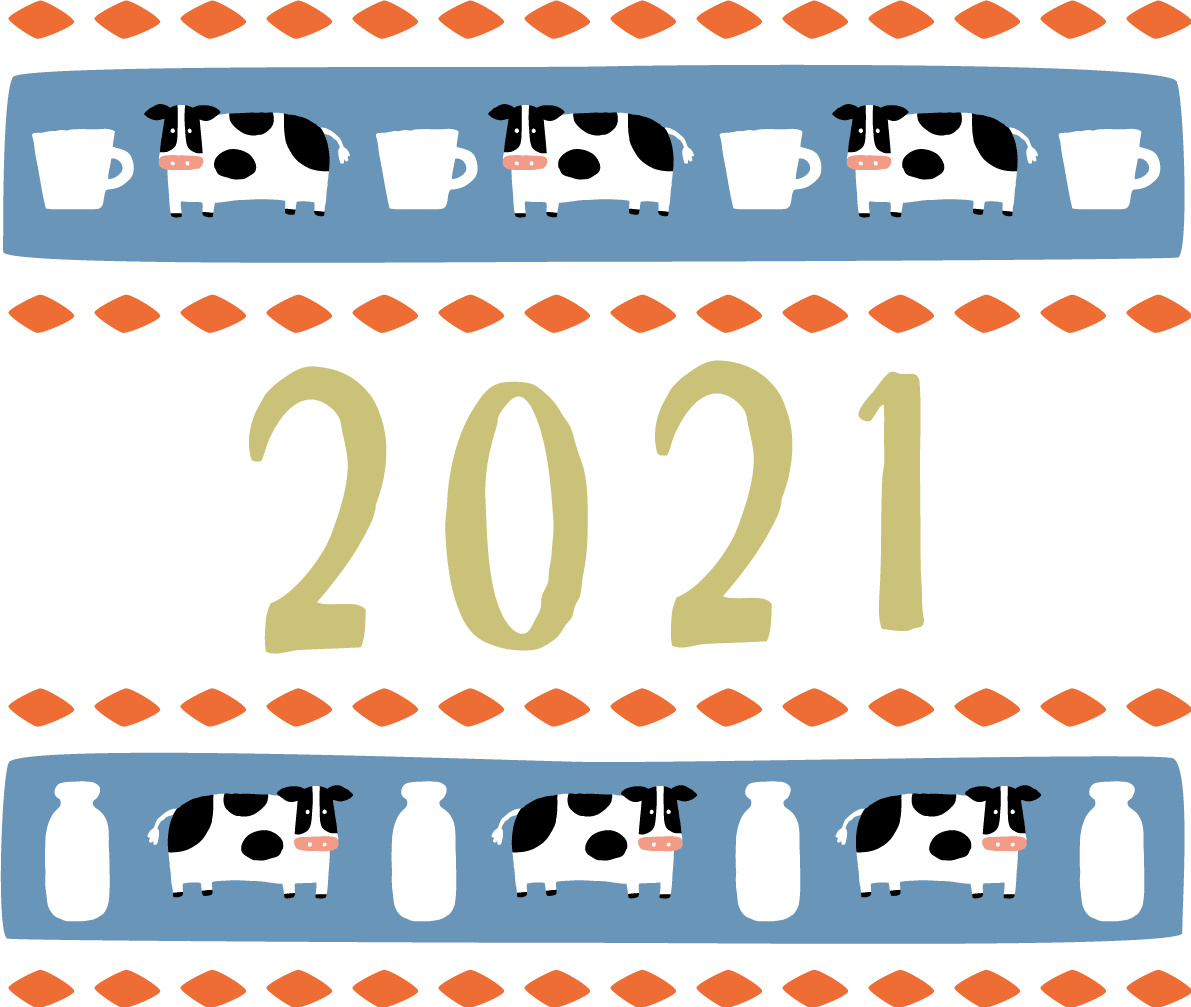 2021 characters and patterns of cows, milk bottles and cups-Cute Ox Year