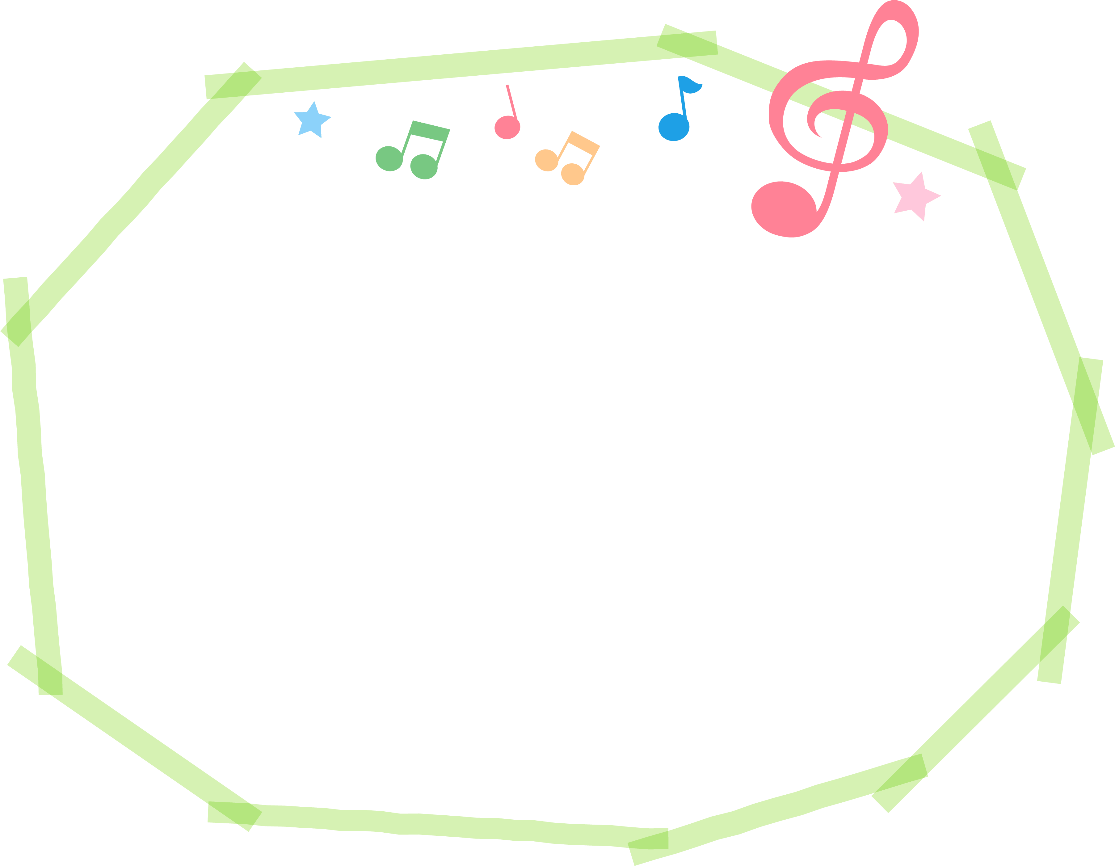 Blue treble clef and light blue marker-like frame of musical notes Decorative frame -