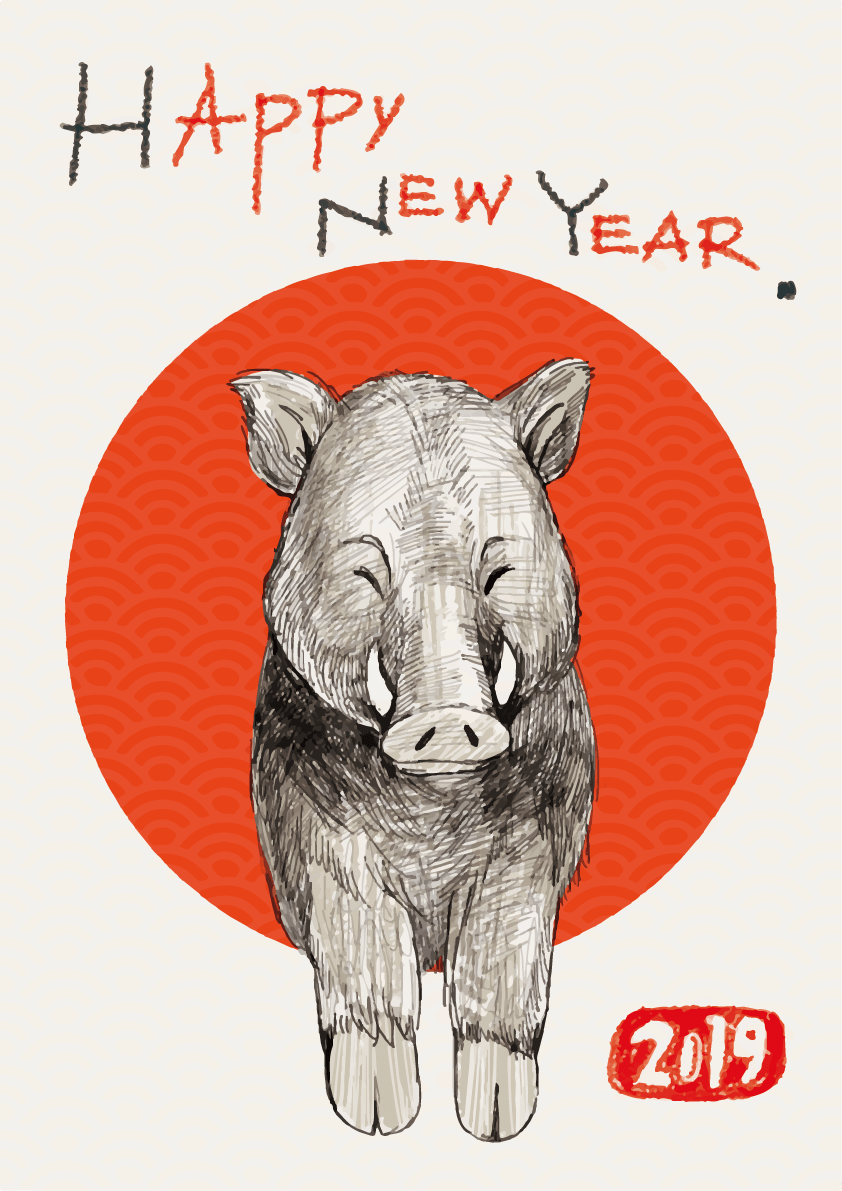 Cute and gorgeous New Year's pattern and year of the boar & Uribo -