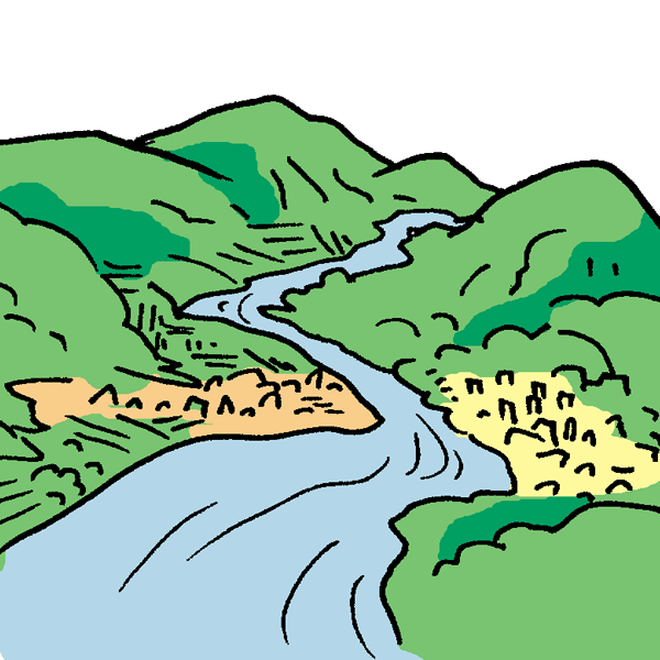 along the river