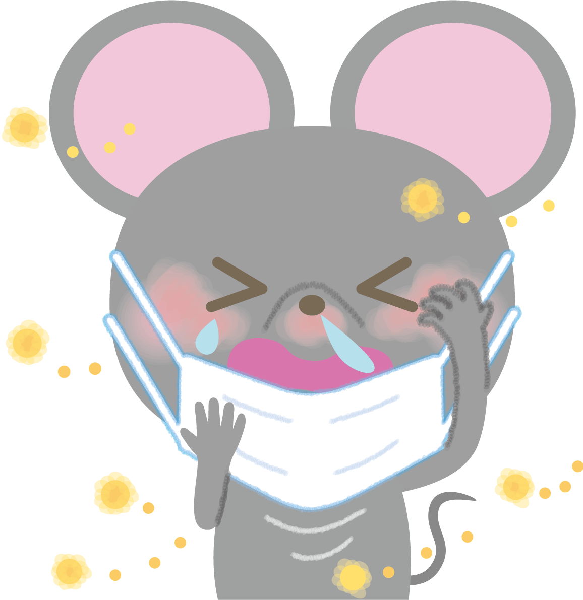 Mouse hay fever-Illustration (mask-sneezing-snot-itching eyes)
