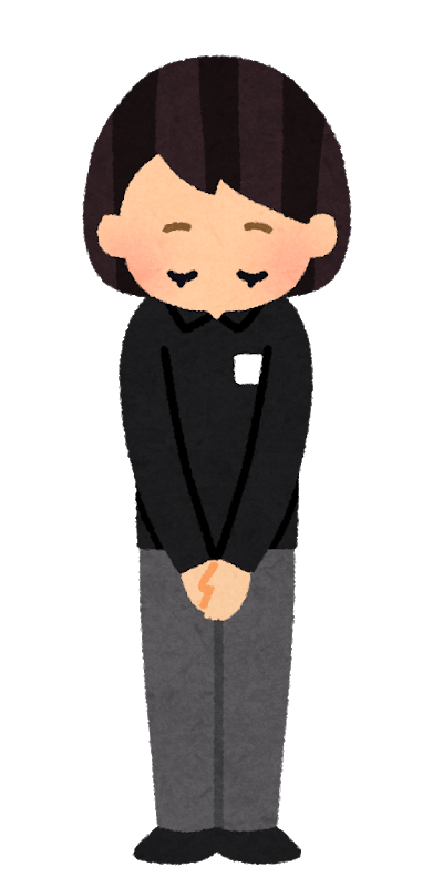 A clerk in a black uniform bowing (male) -