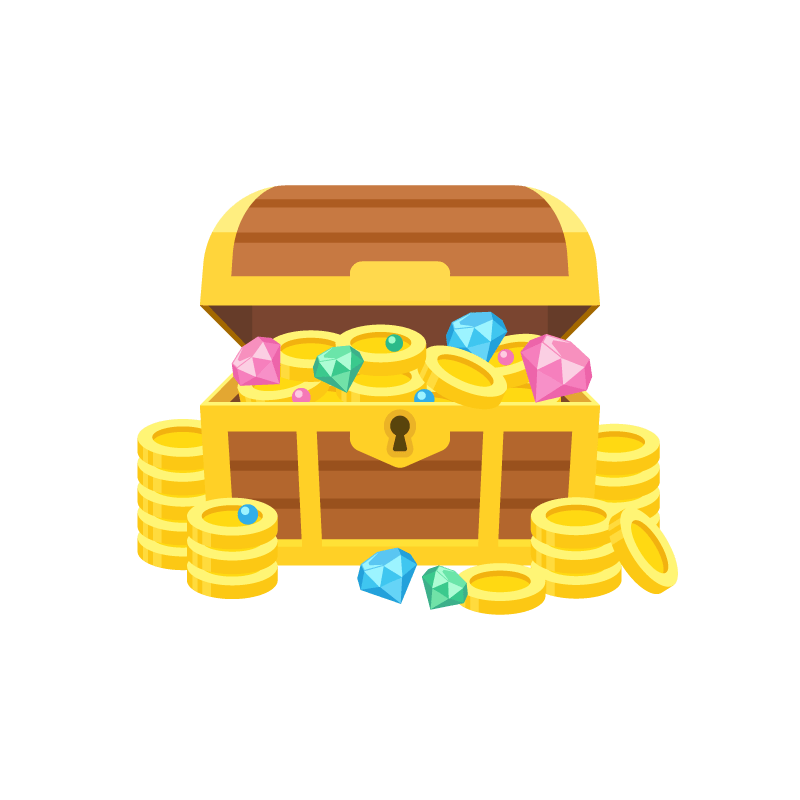A pile of treasures of money (coins) and jewels (diamonds) -