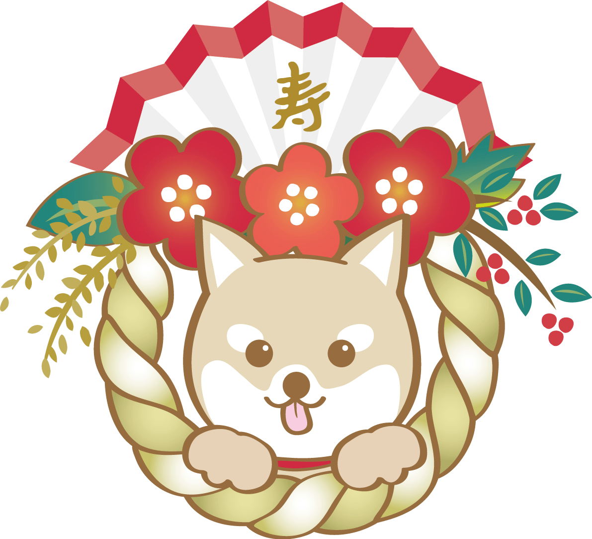 Kadomatsu on both sides and a dog in a well-behaved pose-2018 Zodiac (Year of the Dog) -