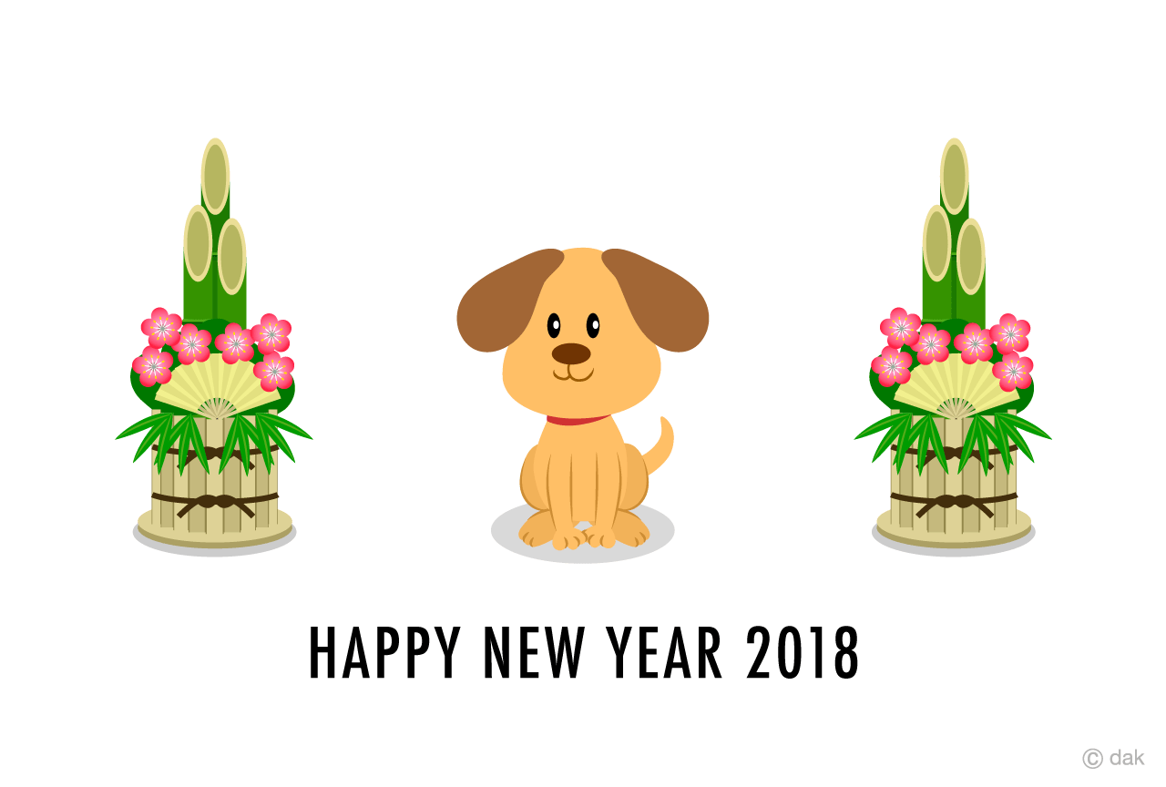 • Kadomatsu and a dog character in a kimono
