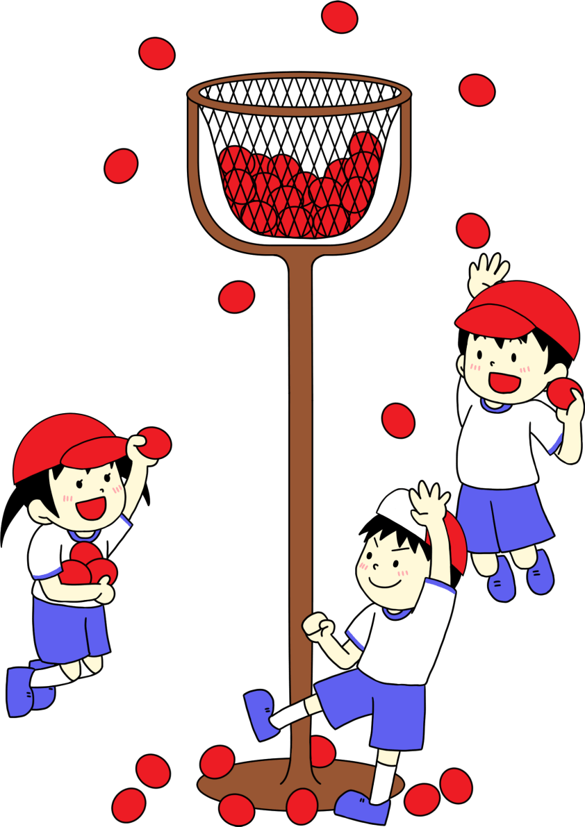 Athletic meet, children in red and white hats are putting balls-Autumn