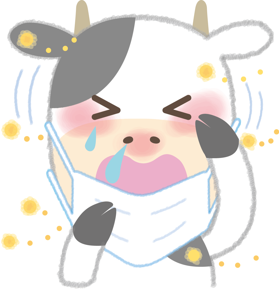 Cow pollinosis-Illustration (mask-sneezing-snot-itching eyes)