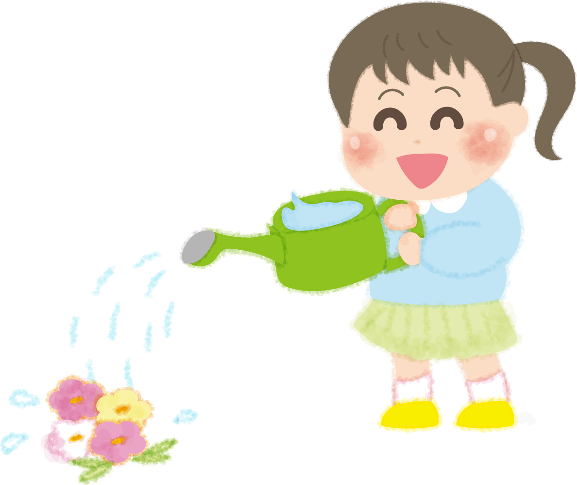 Girl watering flowers / kindergarten