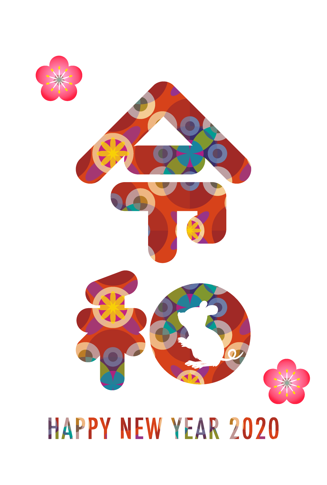Mouse New Year's card with cute silhouette -