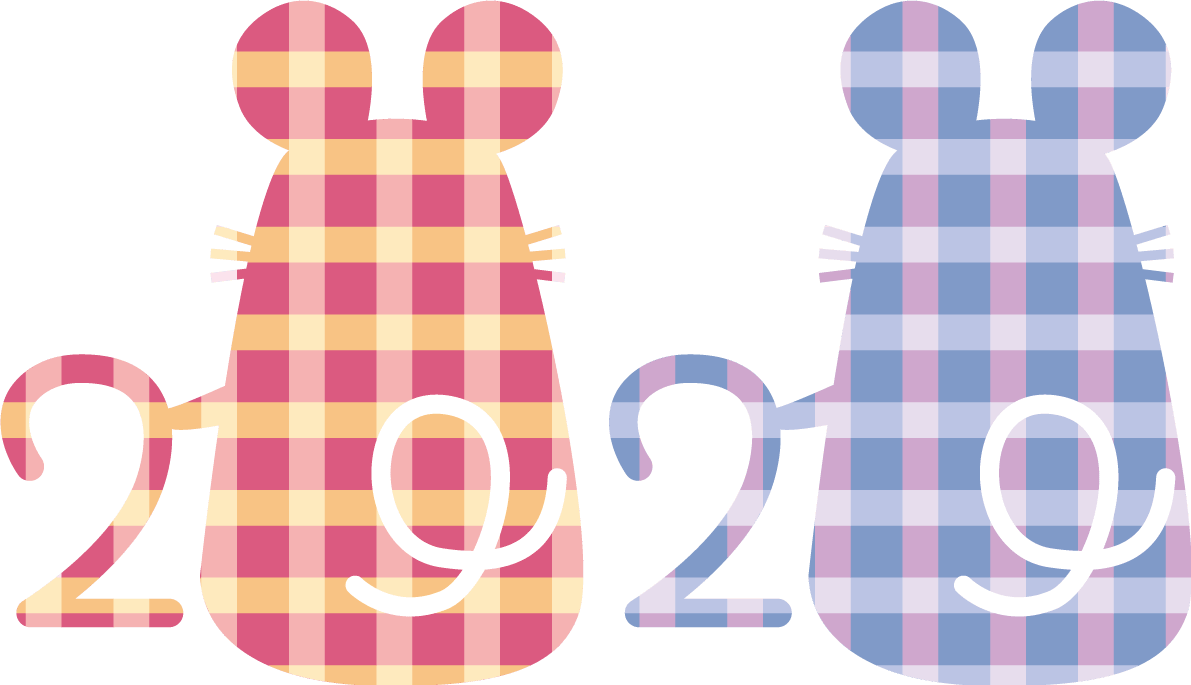 Two plaid mice in the back (rat-mouse) have 2 and make 0 with the tail to express 2020-Children