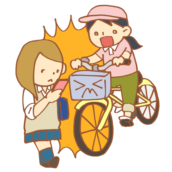 Accident between a pedestrian and a bicycle playing with a smartphone