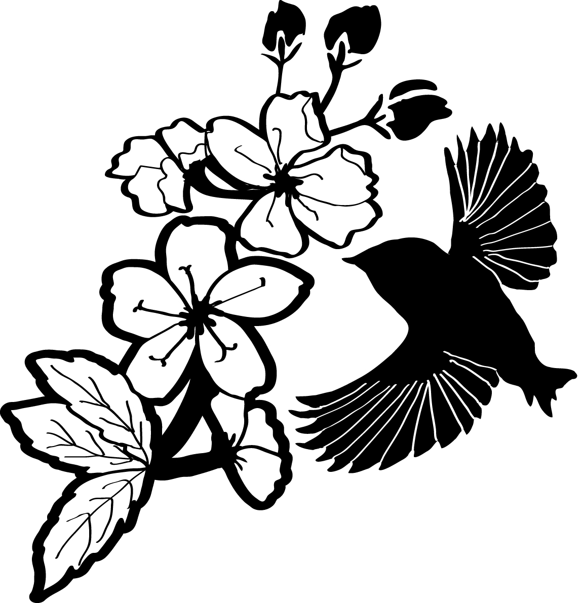 Black and white cherry blossom illustration-fashionable (birds and branches)