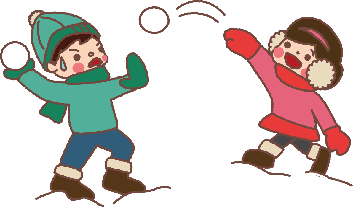 Boys and girls in a cute snowball fight
