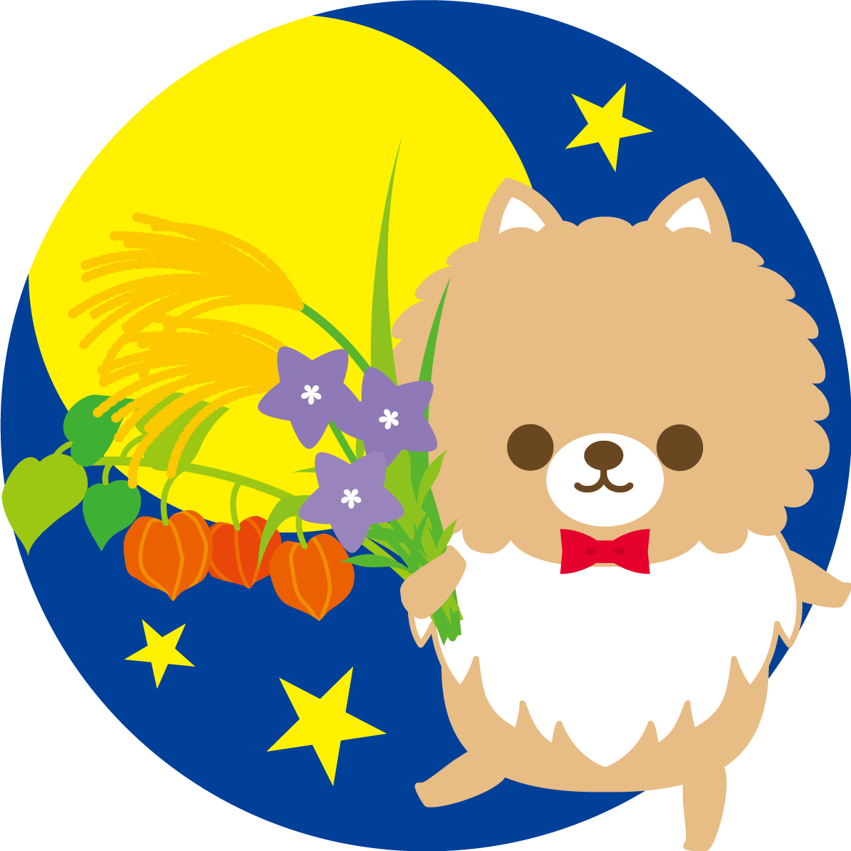 Pomeranian (dog) full moon (with autumn flowers) animal