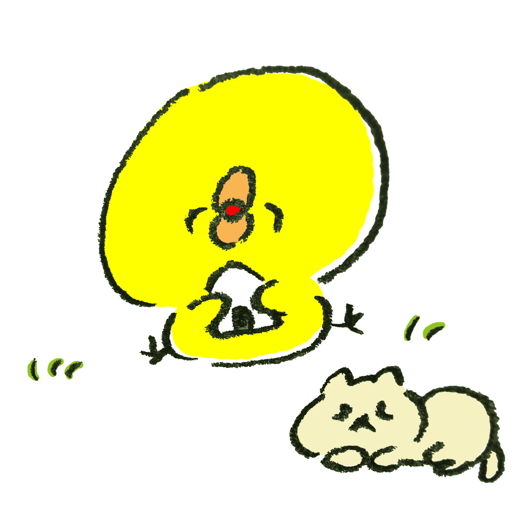 A chick eating dumplings while watching the moon -